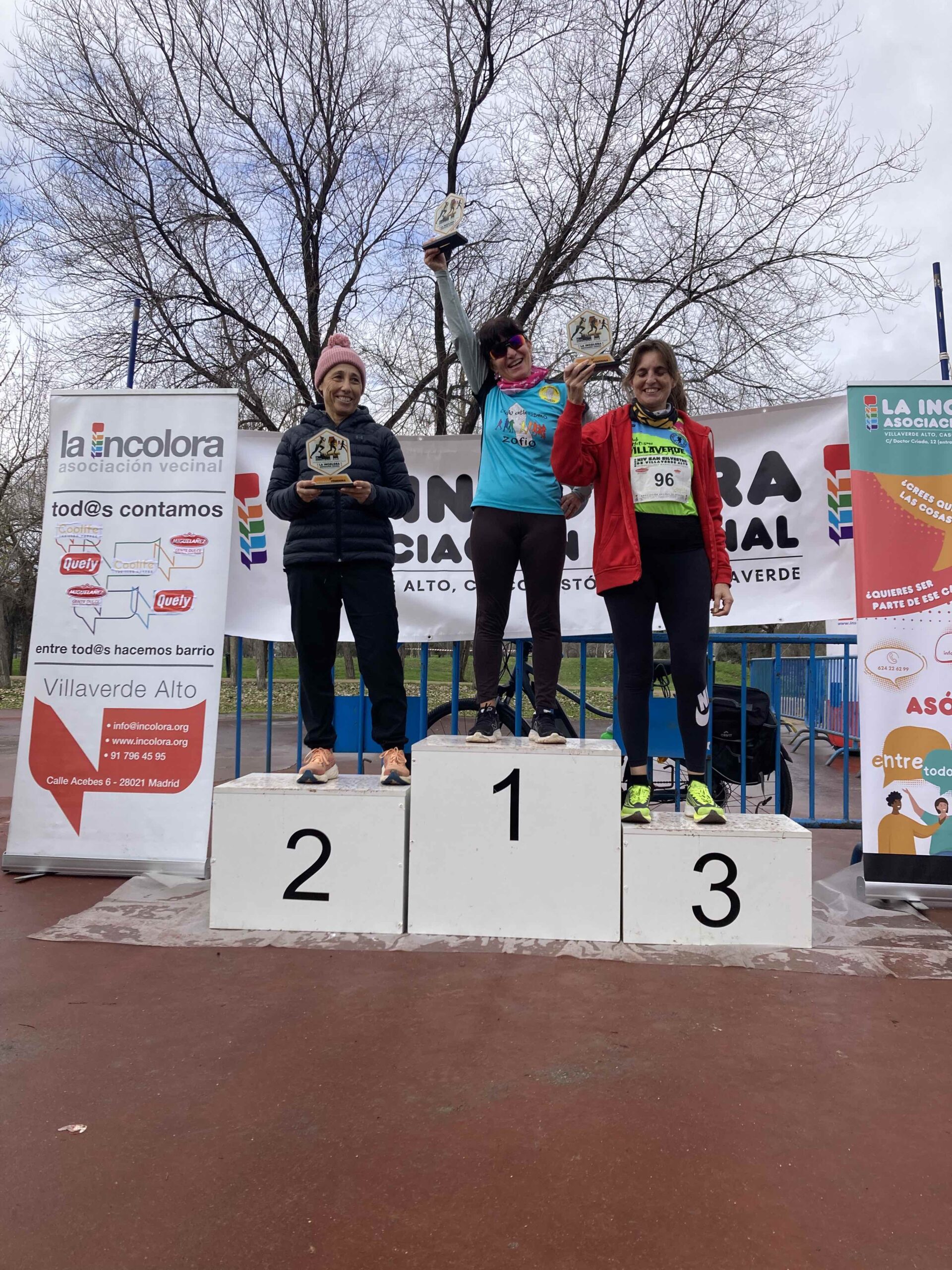 Así mismo agradecer a los distintos comercios del barrio que donaron para poder sacar el cartel de la carrera, Ópticas EMI, Bodega La Mancheguita, Ferretería El Chaflan, Aluminios Guerrero, Gestoría Asesoría ASETRA, Pub TONOS, Bar ASTURIAS, Mercado Municipal de Villaverde, Pinturas CASTILLOCOBO y Coreduría de Seguros TAT. Y también a los que han donado premios y nos acompañado hoy: Clínica de Fisioterapia Perez Romero, Optica Emi, ASETRA, Mercado Municipal de Villaverde Alto y Clínica de Fisioterapia FisioSipos, a todas ellas muchas gracias.