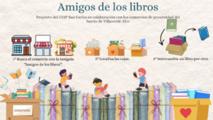 El proyecto “Amigos de los libros” es una iniciativa del Colegio San Carlos que surge para celebrar, este año 2026, el Día del Libro y tiene como objetivo cohesionar el barrio y la escuela en una colaboración conjunta por la cultura y más concretamente por la literatura.