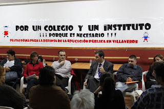 Los representantes de la Plataforma por la defensa de la enseñanza pública de calidad en Villaverde se han reunido con Tomás Gómez para analizar conjuntamente las diversas problemáticas educativas que padece el distrito y las propuestas que sobre esa materia tienen para mejorar la situación en materia de enseñanza.